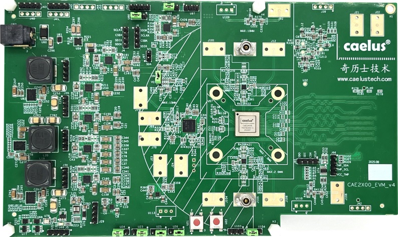 CAE2X00 EVM用于评估CAE2X00高速ADC,该评估板通过FMC+连接至FPGA开发板(AXKU5),配合专用上位机软件,实现快速的芯片性能评估和设计参考。
